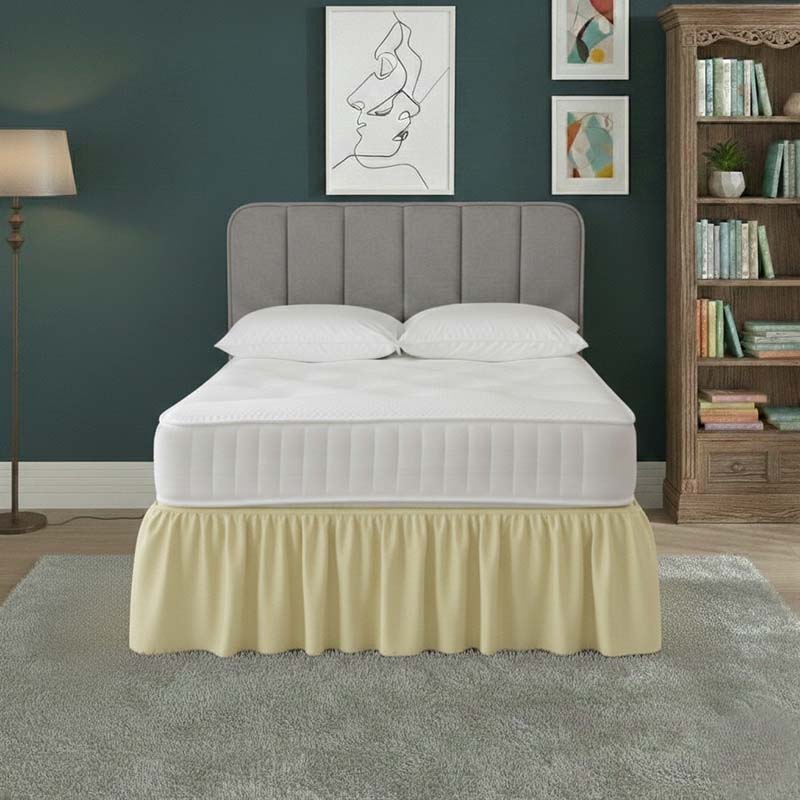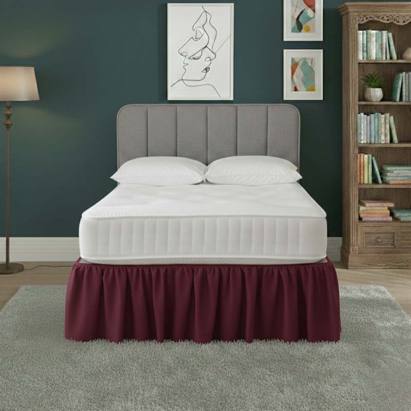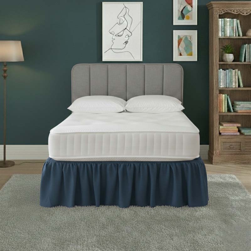 This base valance sheet is designed to deliver a smooth, secure fit while adding comfort and practicality to your bedding. Featuring deep 16 inch frill , it stays firmly in place throughout the night. Made from polyester cotton mix, breathable fabric, it offers lasting comfort and durability, while its easy-care, wrinkle-resistant finish makes it ideal for everyday use. A reliable and stylish addition to any bed. Machine washable, it’s an ideal bedding essential for bedrooms and guest rooms.