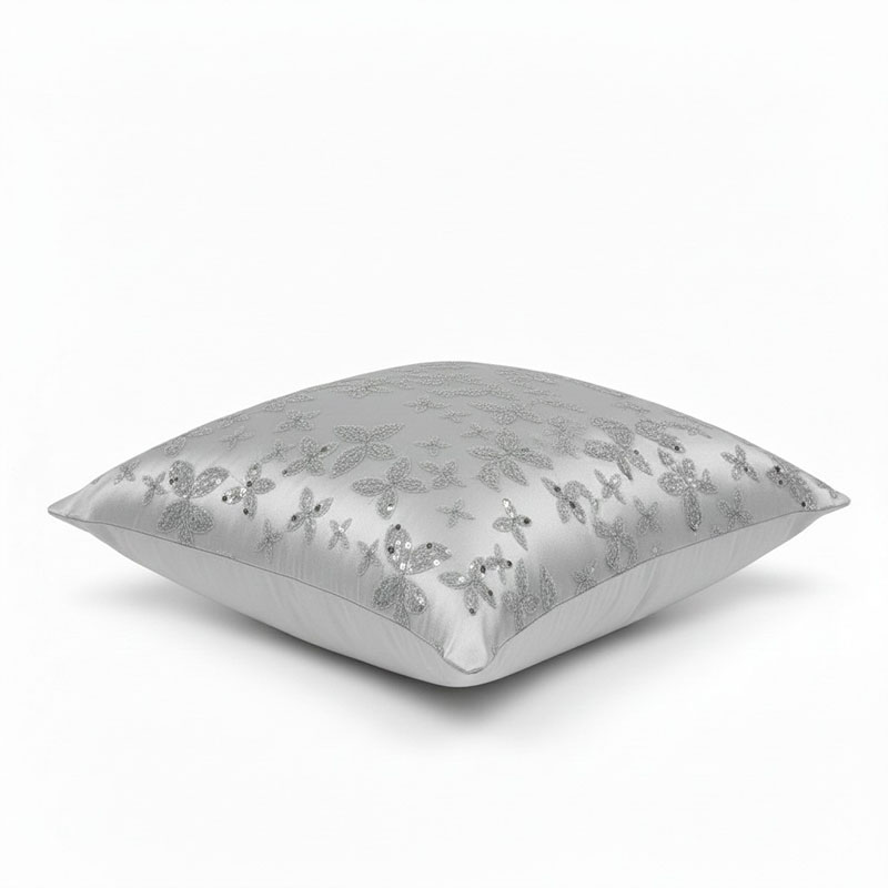 Perfect for sofas, beds, armchairs, or accent seating, this cushion cover adds texture, colour, and visual interest while effortlessly enhancing both modern and glam interiors. The intricate sequin detailing contrasts beautifully with the smooth fabric base, creating a stylish and eye-catching design that elevates your living room or bedroom décor.