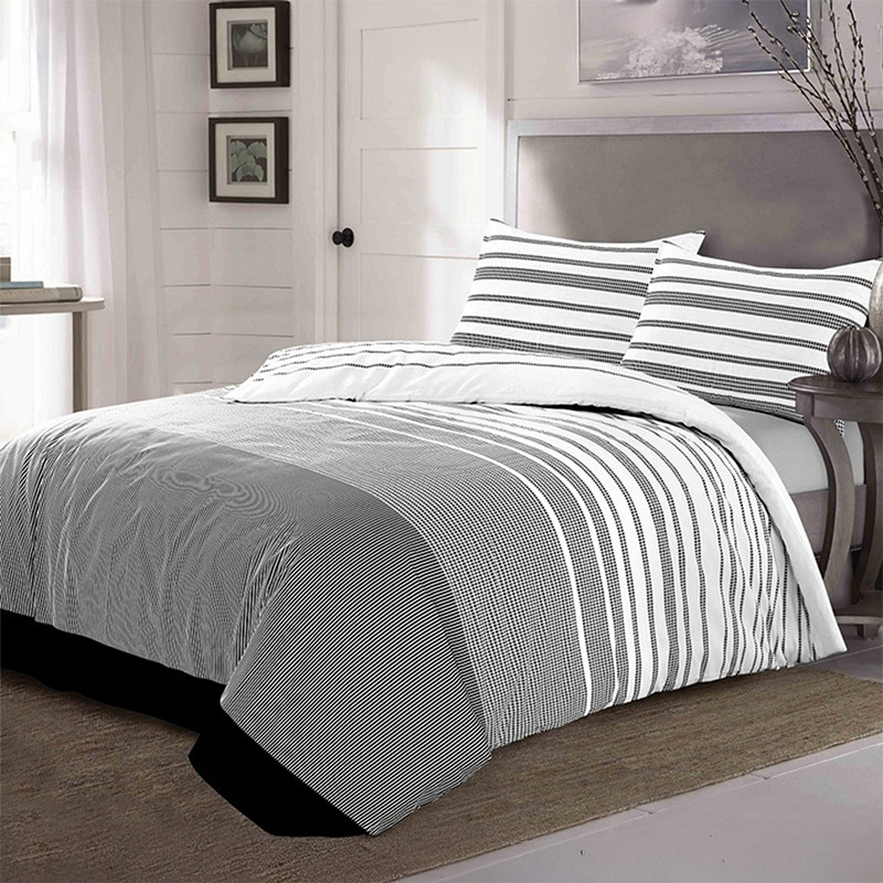 Crafted from breathable, and long-lasting fabric, it offers exceptional comfort night after night, while the high-contrast design brings a striking visual impact without overwhelming your room. The secure button closure keeps your duvet neatly in place, and the matching pillowcases complete the cohesive monochrome look.
