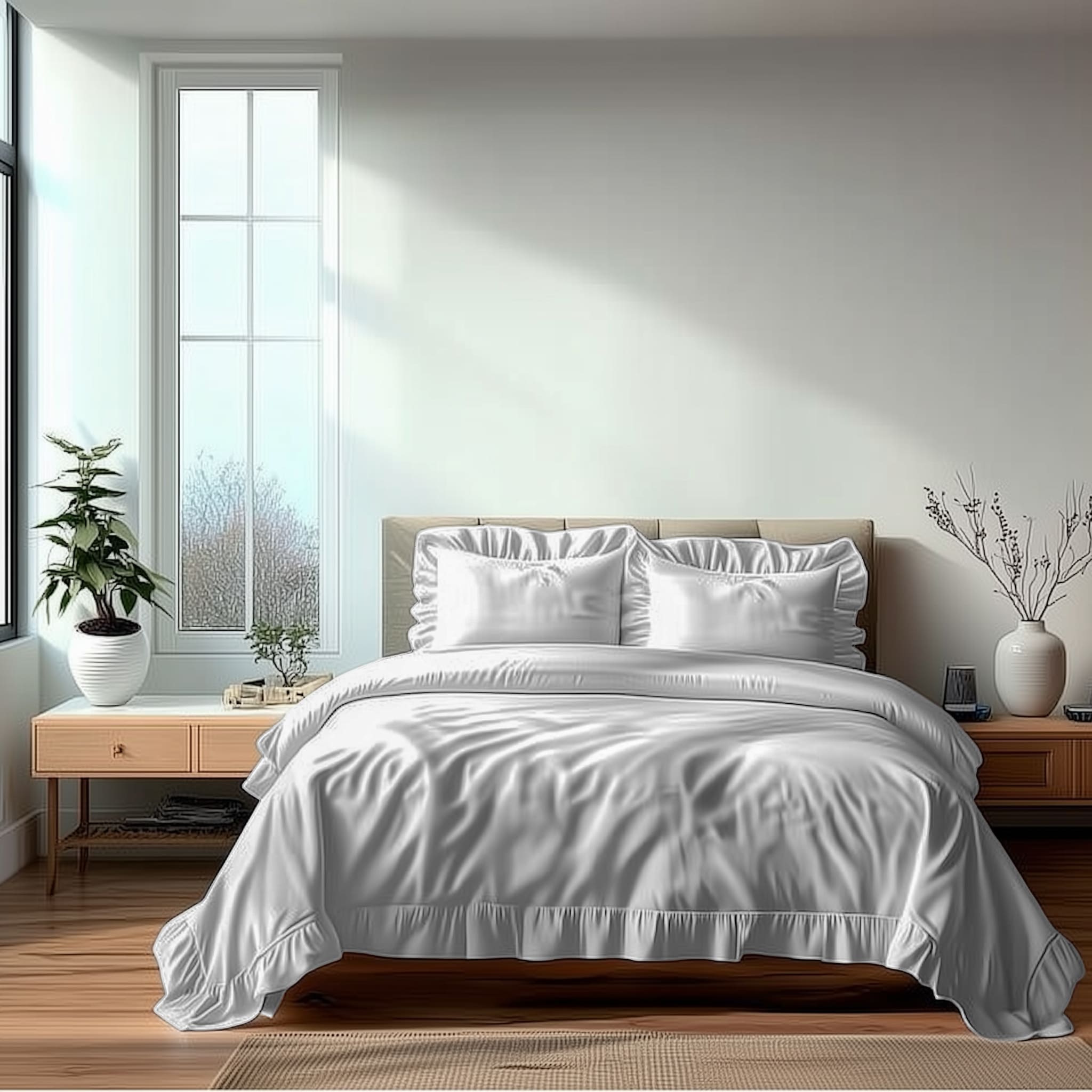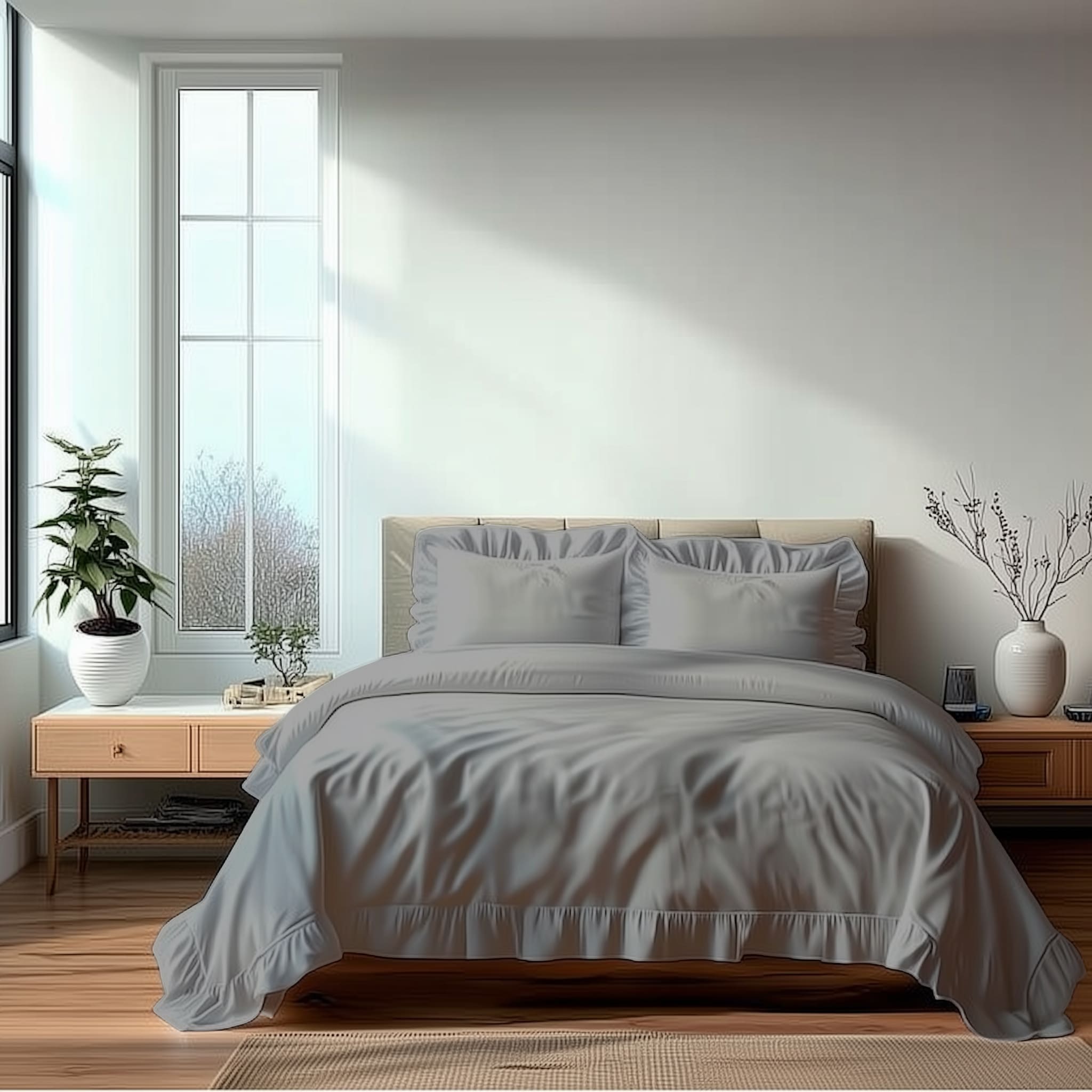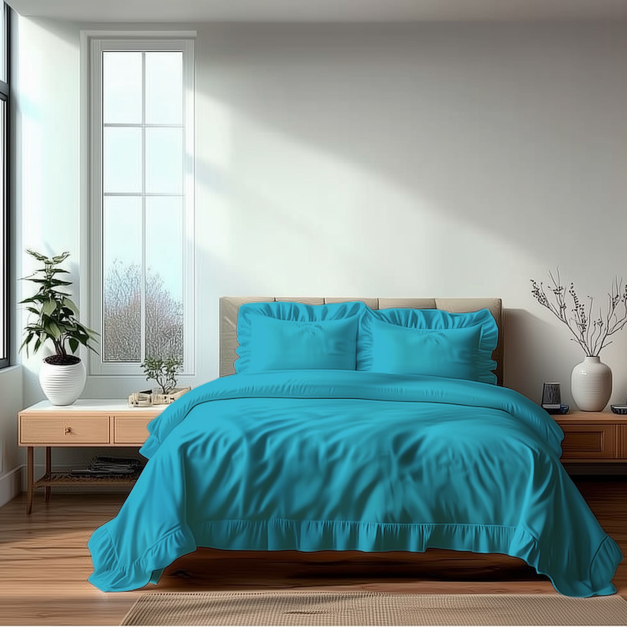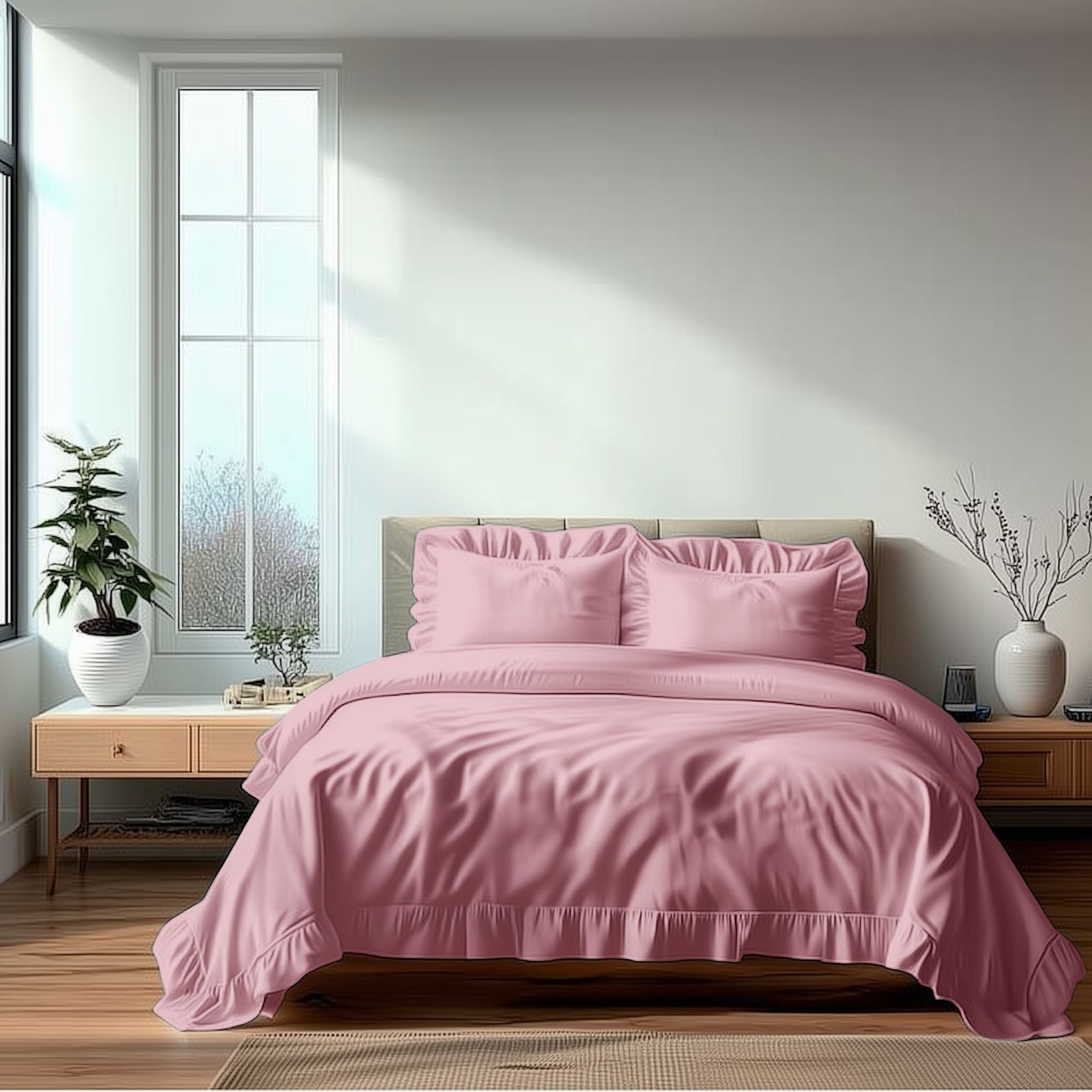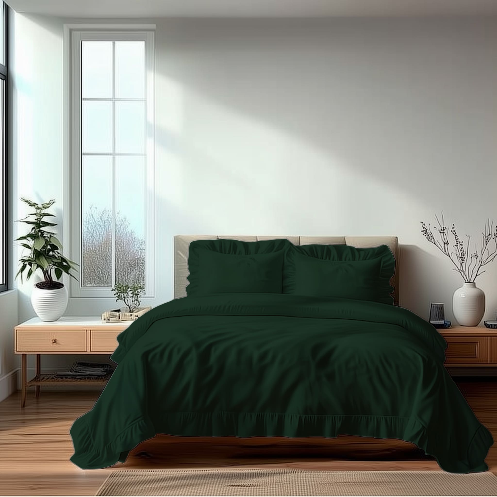 Duvet Cover And Pillowcase Set Pink Teal White Green Silver Frilled Design Polycotton Linen