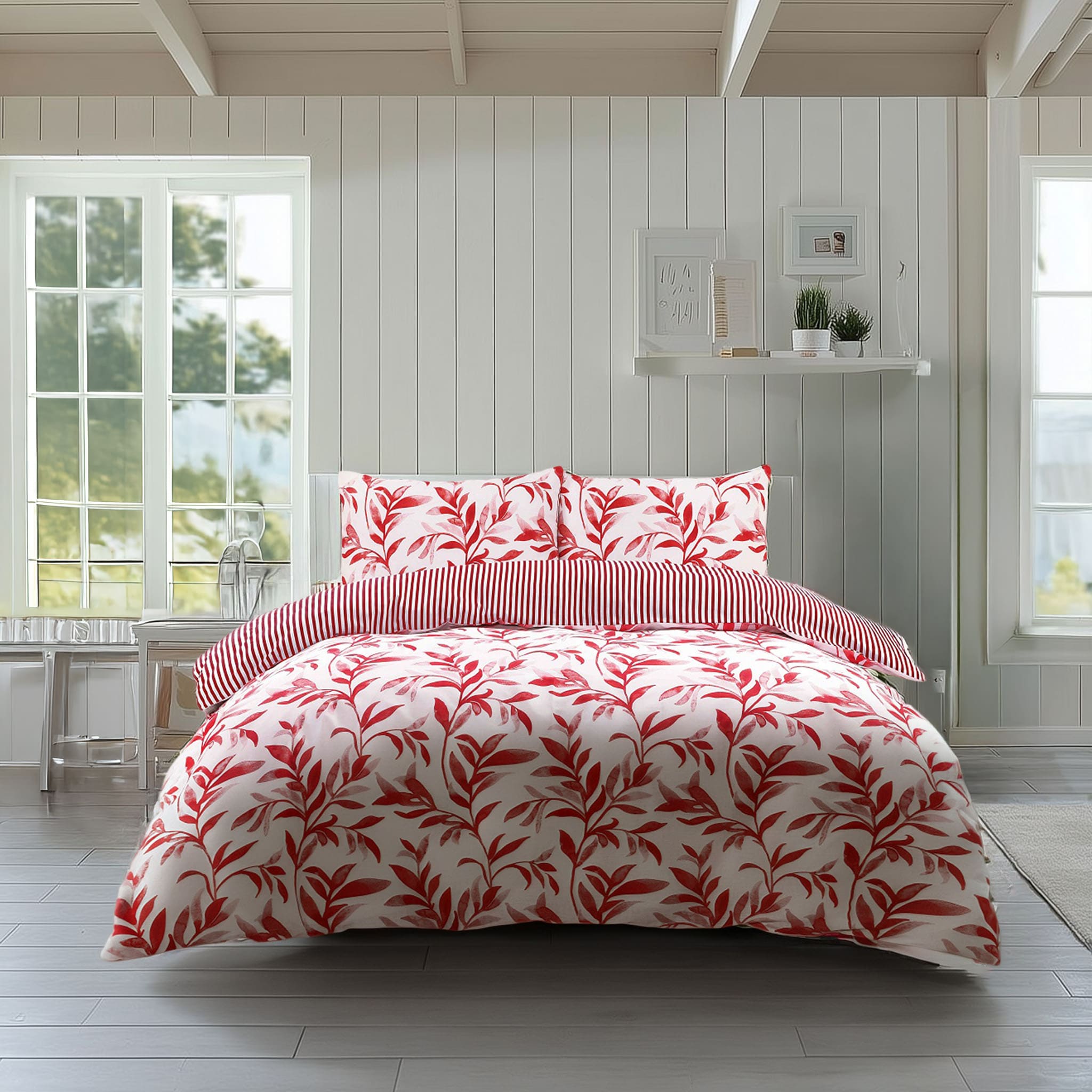 Bring natural elegance to your bedroom with our Reversible Leaf and Stripe Duvet Cover Set. Made from soft polycotton, it offers comfort, style, and two modern looks in one.