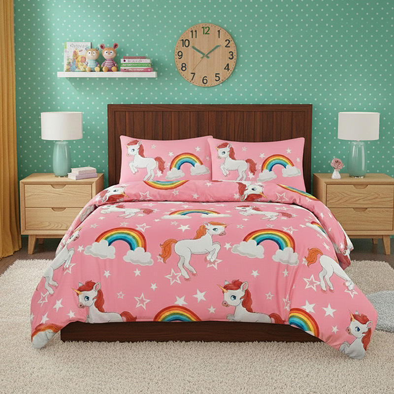 Kids Unicorn Duvet Cover Set Cute Colorful And Soft Bedding