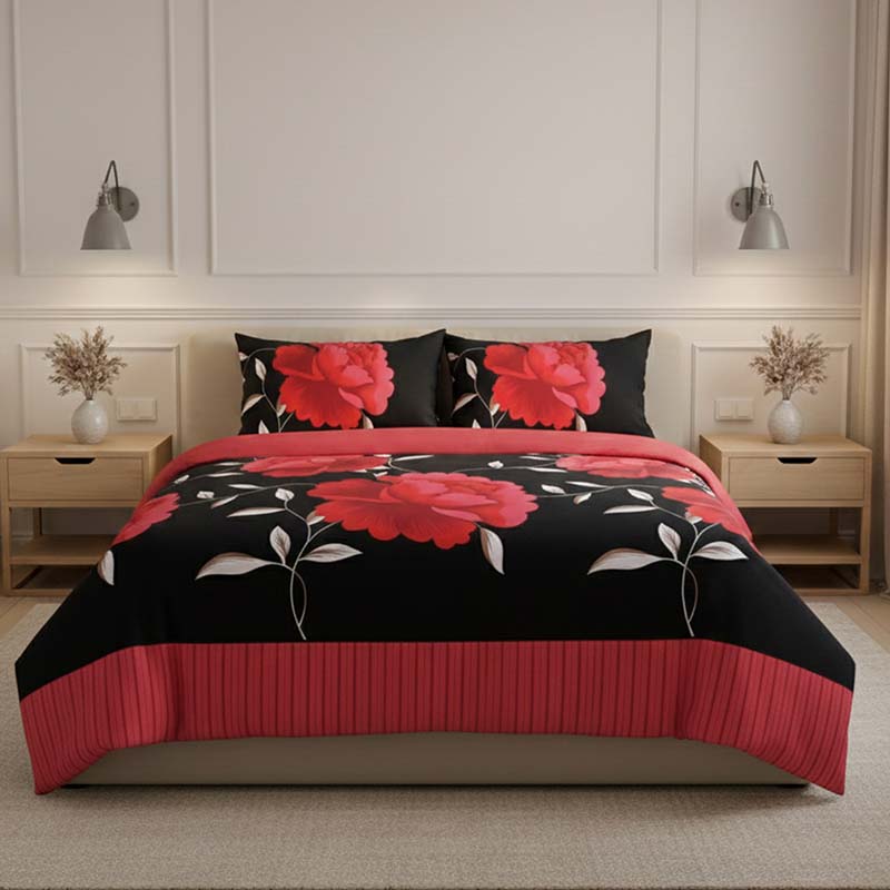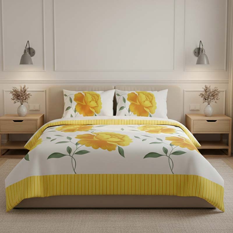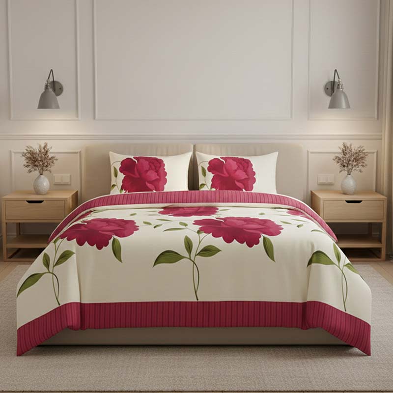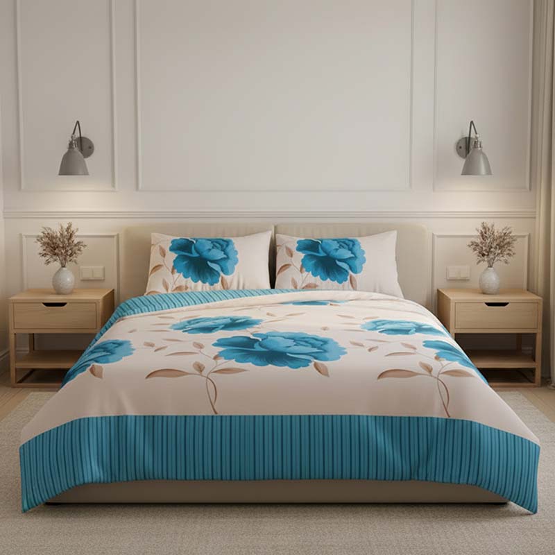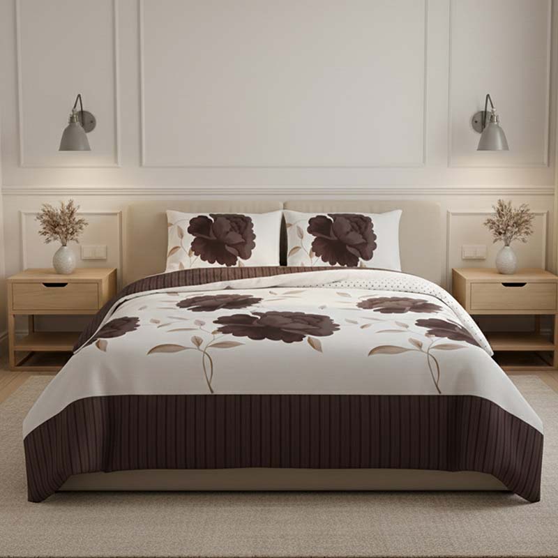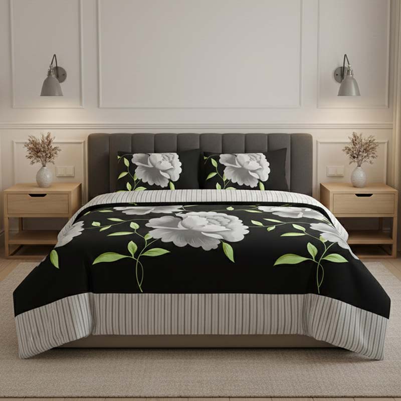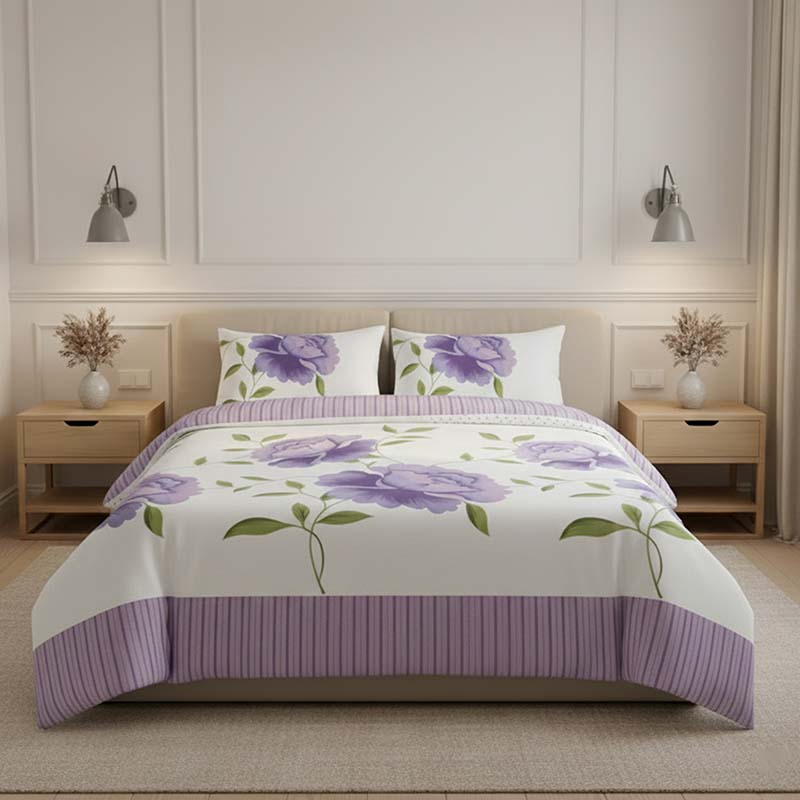 Reversible Floral Duvet Set Elegant Flower Stripe Pattern Bedding for Home Decor