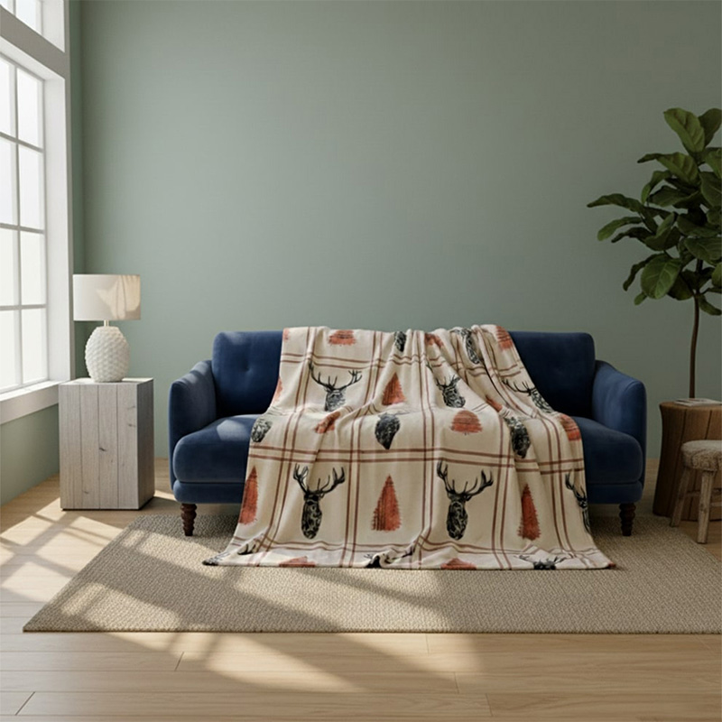 Stag Print Christmas Throw Blanket Cozy Festive Holiday Decor Gift