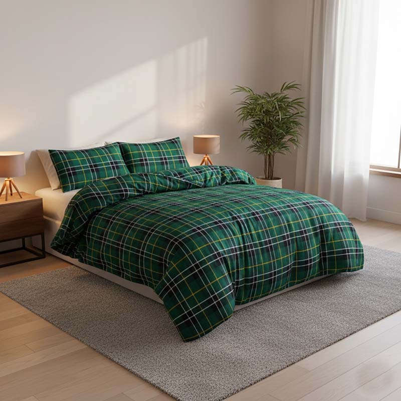 Thermal Flannelette Tartan Duvet Cover Set Warm Brushed Cotton Bedding