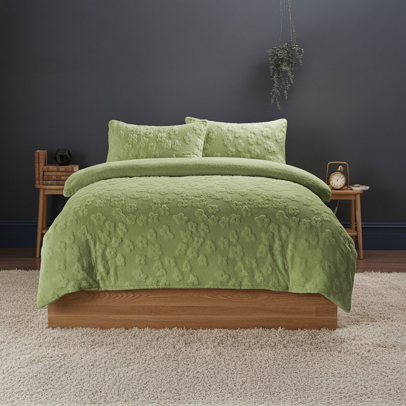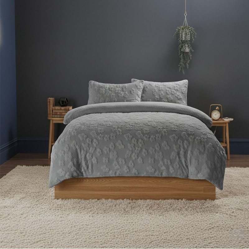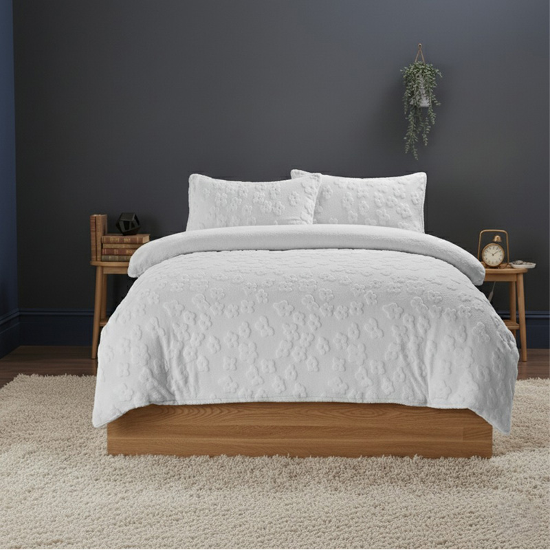 Ultra Soft Teddy Duvet Cover Set Daisy Embossed Cozy Fleece Bedding